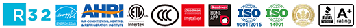 依据 ANSI/AHRI 210/240 标准测试评定,通过CCC中国国家强制性产品认证和中国能效标识,通过第三方美国电子测试实验室ETL的性能测试。